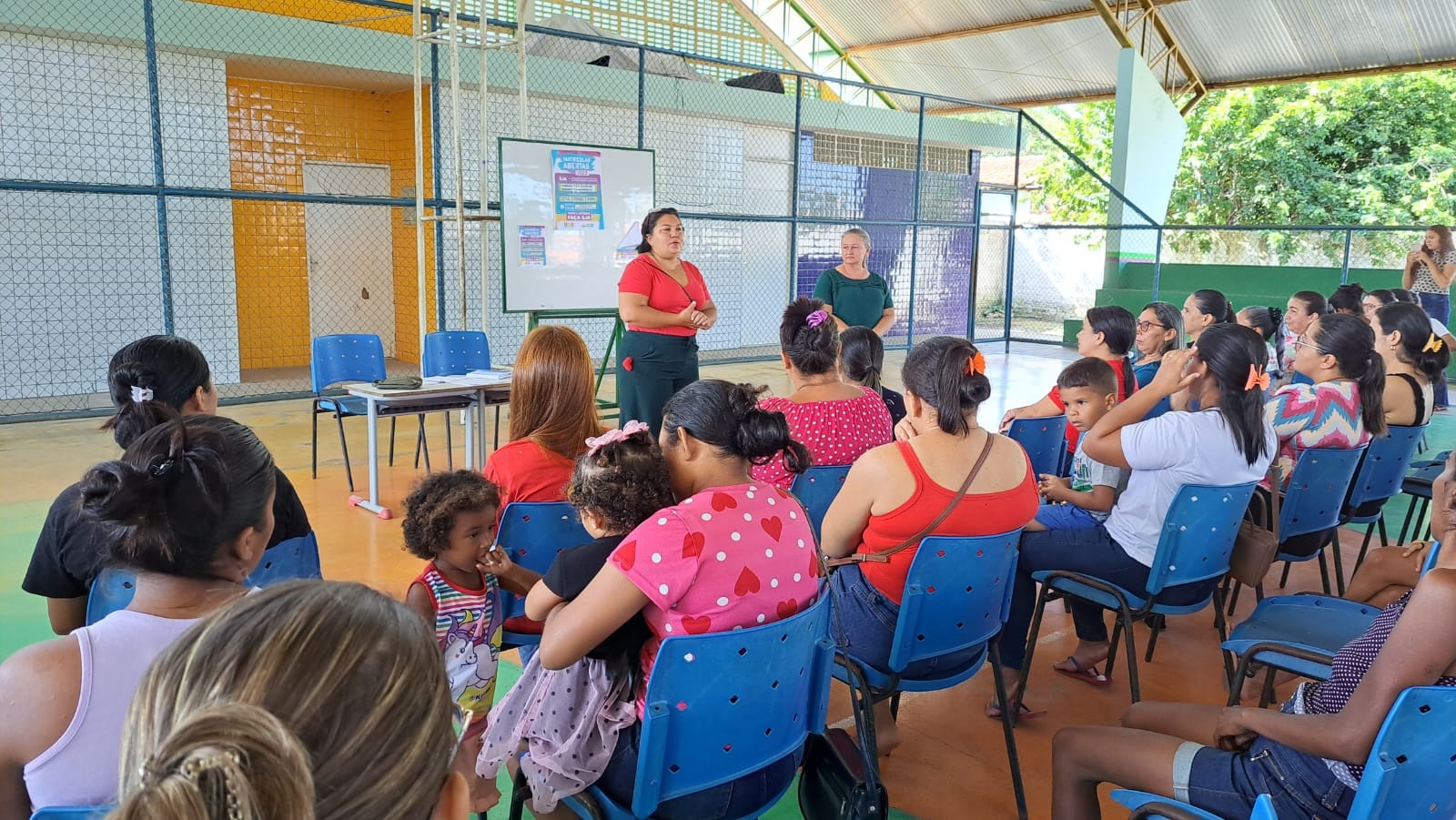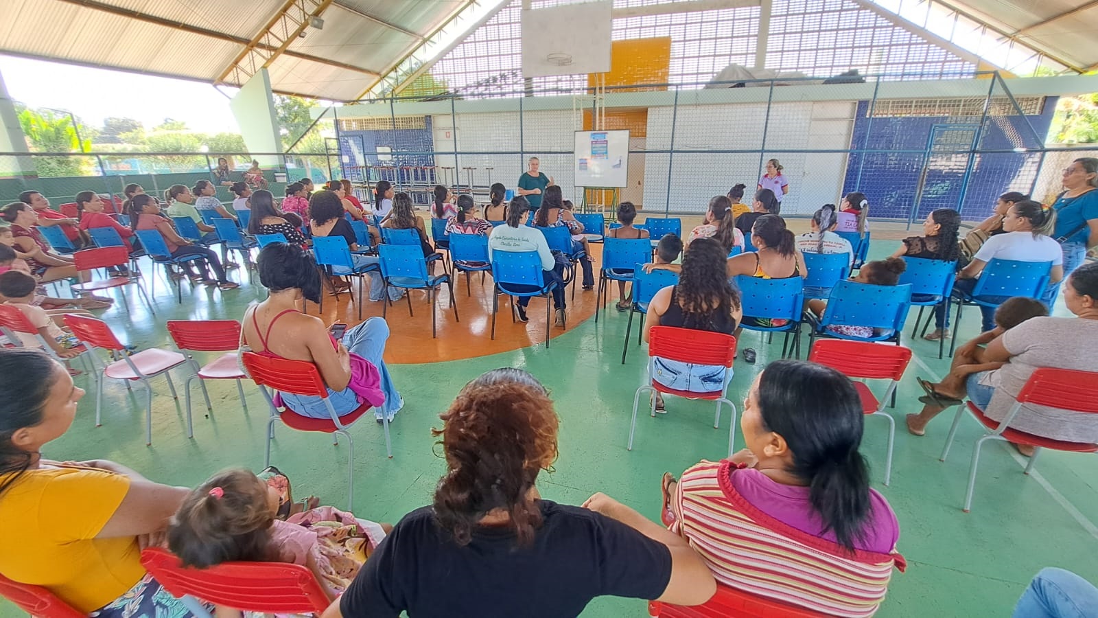 Aconteceu na manhã desta segunda-feira (13), na quadra do ginásio poliesportivo da escola da Liberdade, uma reunião com as mães de crianças da creche Tia Camila, no bairro Liberdade.