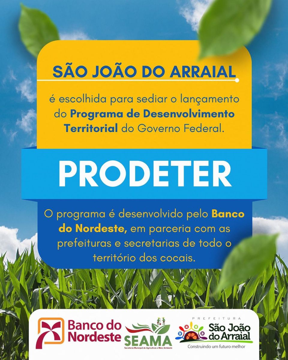 A data de lançamento do PRODETER em São João do Arraial será divulgada em breve.