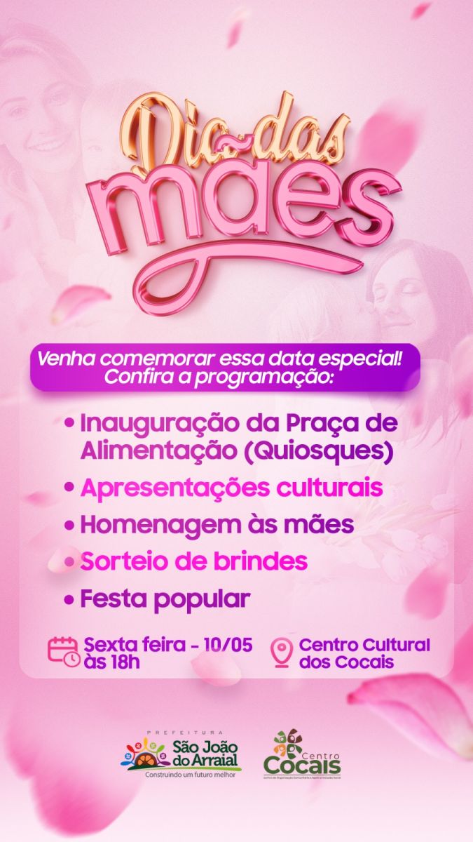 A prefeitura de São João do Arraial divulgou a programação da festa em homenagem às mães do município.